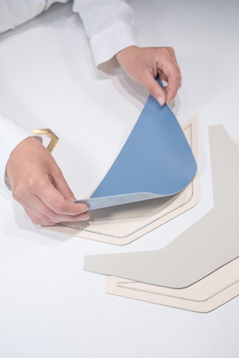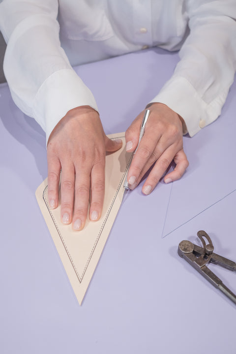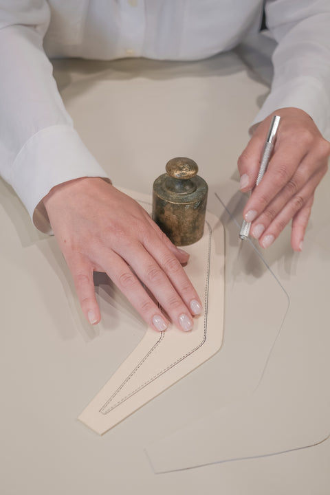 Solo a seguito di questo studio, Adone incontra le mani esperte dei maestri pellettieri toscani, che con cura trasformano l'idea in realtà.