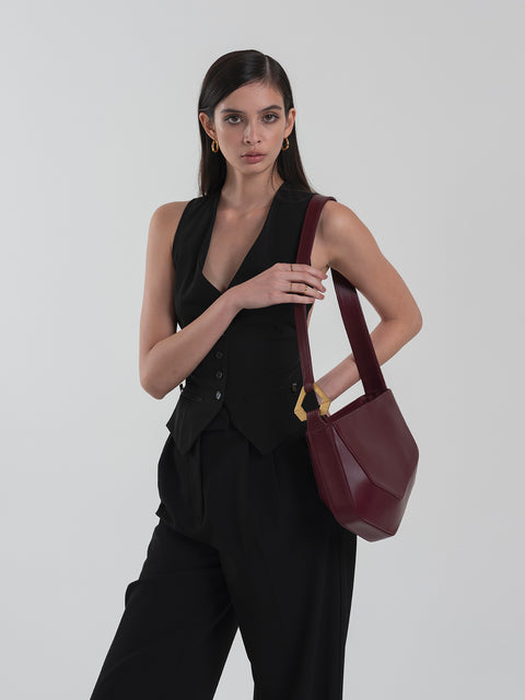 Questa creazione si ispira alle forme dell’architettura e del design contemporaneo, conferendo uno stile rigoroso e sofisticato a chi la indossa.